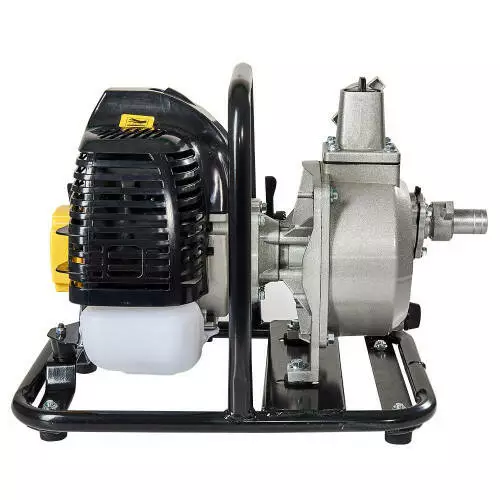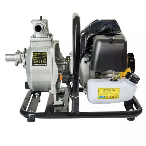 **Економічність і зручність:** Паливний бак на 1,25 л забезпечує безперервну роботу на кілька годин завдяки низькій витраті палива. Запуск двигуна здійснюється за допомогою ручного стартера, що підвищує надійність мотопомпи і забезпечує простоту її використання.
