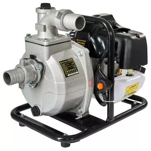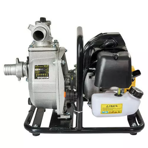 Мотопомпа складається з 2-тактного одноциліндрового двигуна внутрішнього згоряння та центробіжного самовсмоктувального водяного насоса, що закріплений на металевій рамі через амортизаційні подушки для зменшення вібрацій і шуму. Чавунна крильчатка насоса забезпечує ефективну перекачування води з глибини до 8 м на висоту до 21 м, а максимальна продуктивність становить 15 м³/год.