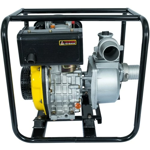 Конструктивно виріб складається з 4-тактного дизельного двигуна й самовсмоктувального відцентрового водяного насоса, які змонтовані на міцній металевій рамі. Для запуску двигуна мотопомпи використовується ручний стартер. Ефективне повітряне охолодження двигуна виключає його перегрівання навіть в умовах інтенсивного використання.