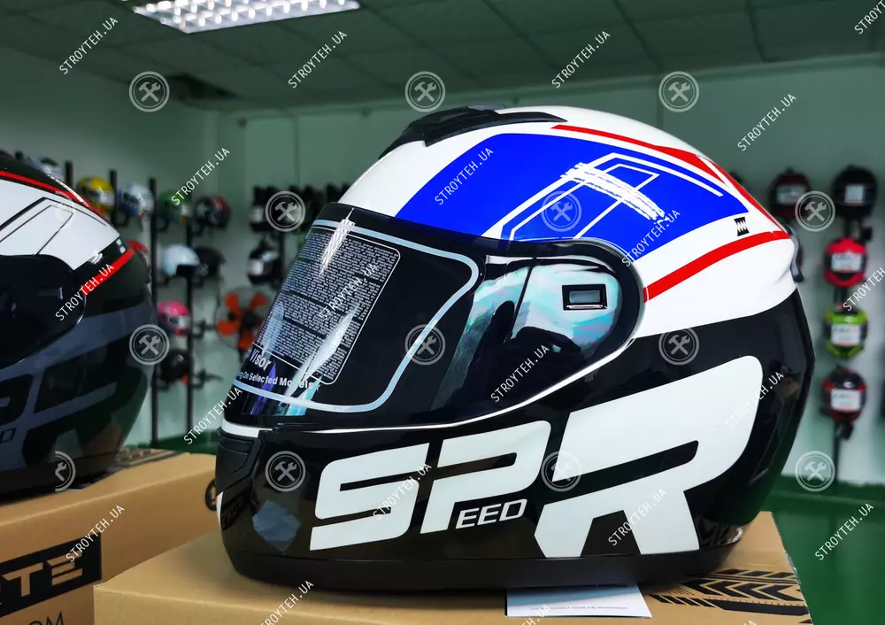 Мотошлем 902 Forte бело-синий, L Мотошлем 902 Forte - удобная и яркая модель выполненная в бело-синим цвете. Шлем выполнен из качественного ABS-пластика. Важным плюсом модели является сьемный подголовник.