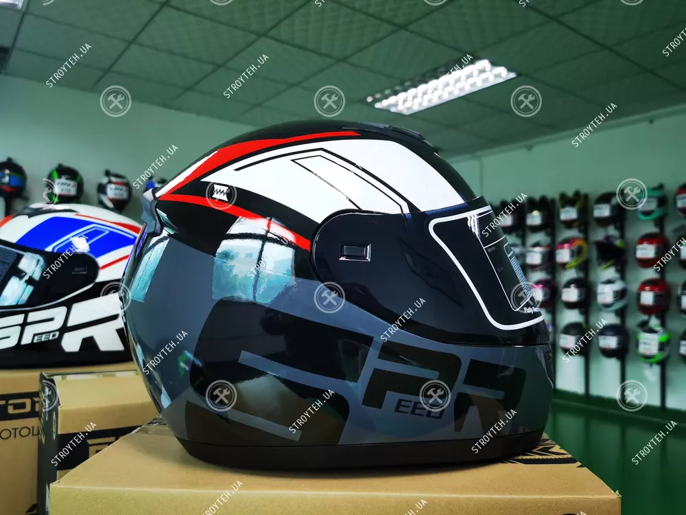 Мотошлем 902 Forte черно-белый, L Мотошлем 902 Forte - удобная и яркая модель выполненная в черно-белом цвете. Шлем выполнен из качественного ABS-пластика. Важным плюсом модели является сьемный подголовник.