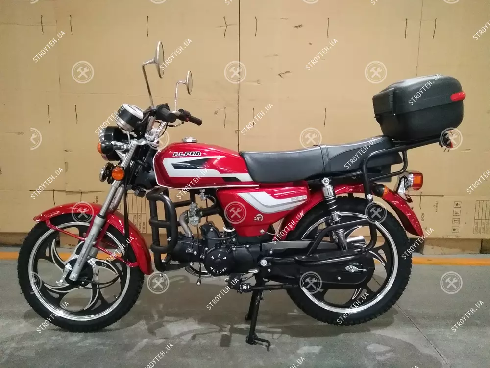 Мотоцикл ALFA FT125-2 красный Forte Дорожный мотоцикл FORTE ALFA FT125-2 - мощная модель с 4-тактным, карбюраторным двигателем объемом 125 см3. Мощность мотоцикла 8 л.с. Установлена воздушная система охлаждения. В мотоцикле стоят легкосплавные диски. Максимальная скорость мотоцикла - 80 км/час, средний расход бензина 1,9 л/100 км. Мотоцикл оснащен широкой подножкой для пассажира, защитой для ног водителя, USB разъемом, а также задним багажником с пластиковым боксом.