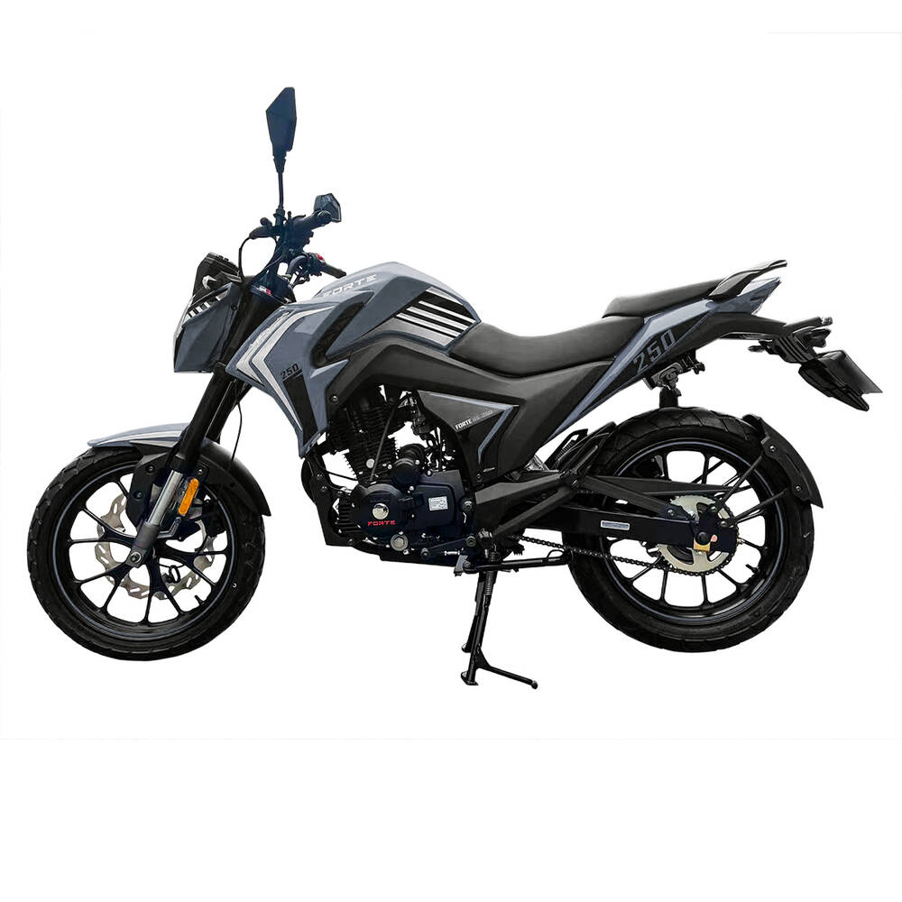 Опис Мотоцикл BS-250 Forte Чорно-сірий Особливості: Двигун з балансуючим валом Передні і задні гідравлічні дискові гальма з вентиляцією Новий дизайн спідометра і тахометра Задня підніжка для пасажира Сучасні легкосплавні диски Електронна панель приладів