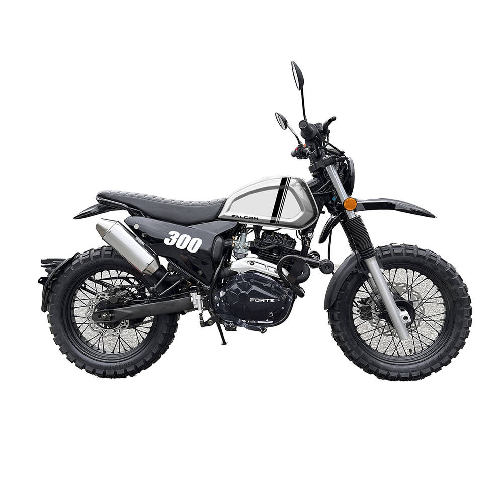 Опис Мотоцикл Forte FALCON 300 Сірий Особливості: Двигун з балансуючим валом Передні і задні гідравлічні дискові гальма з вентиляцією Cпицеві диски LED фара та поворотники Електронна панель приладів Обтікач повітря