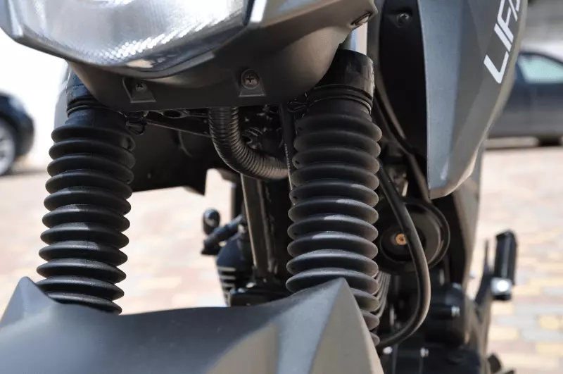 - задні амортизатори жорсткіші з компенсаційною камерою, наповненою азотом, з регулюванням жорсткості- спокійно везе двох осіб;