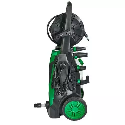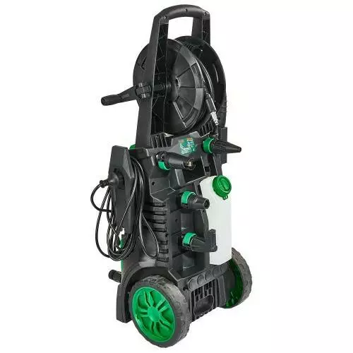 • Легкість транспортування завдяки зручним колесам та катушці для намотування шланга.