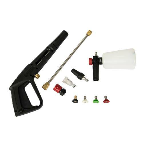 Багатофункціональності зручному металевому спису надають 5 насадок: грязьова, турбо, для нанесення пінної суміші та дві насадки з різними кутами розпилення. Використані матеріали — латунь та нержавіюча сталь — роблять насадки на диво міцними та зносостійкими. Змінюючи насадки, можна задавати силу й форму напірного струменя, обрати оптимальний режим для того чи іншого виду роботи.