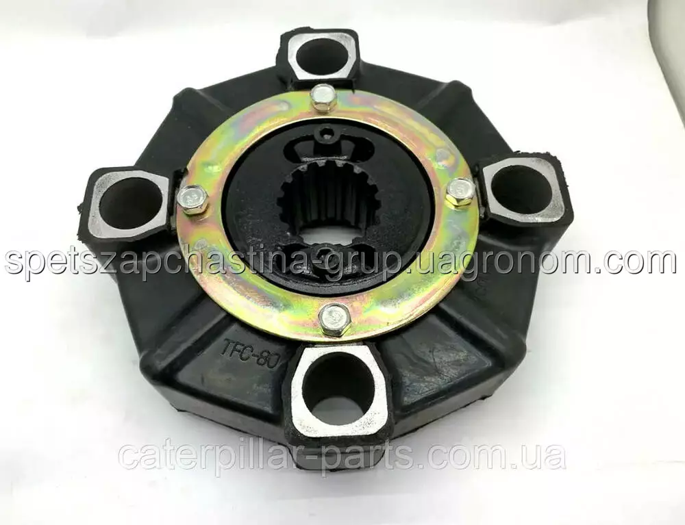 Hезиновая муфта привода главного гидронасоса экскаватора часто заменяемая муфта сцепления основного насоса гидравлики с двигателем. Так как резина подвержена старению со временем из-за динамических нагрузок, на ней начинают появляться трещины и порывы. Установлена металлическая внутренняя вставка E300B 16T (278x54)