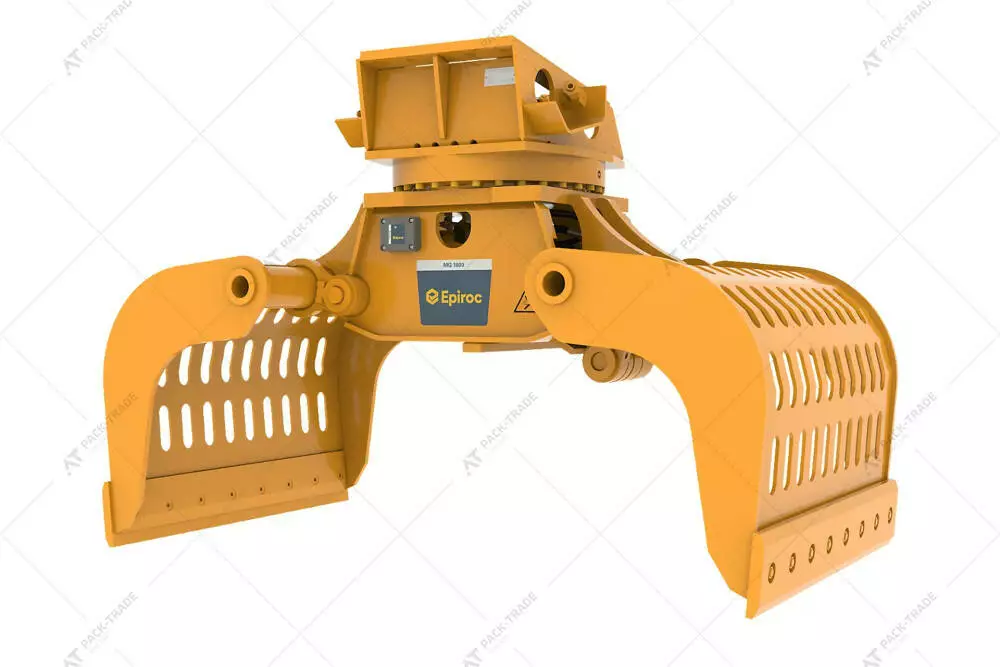 Мультигрейфер Epiroc MG1800 на екскаватор. Вага машини-носія — 20-28 т. Мультигрейфери Epiroc відмінно впораються не тільки з перевантаженням і сортуванням матеріалів, а й з розбиранням кладки або конструкцій з деревини. Мультигрейфери серії MG здатні з максимальною точністю обробити будь-який матеріал. Вони відрізняються надійним захватом та високим зусилля протягом усього циклу роботи.