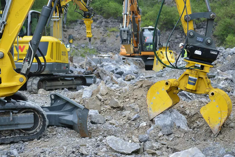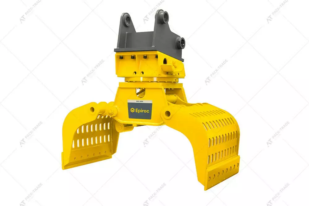 Мультигрейфер Epiroc MG3000 на екскаватор. Вага машини-носія — 35-50 т. Мультигрейфери Epiroc відмінно впораються не тільки з перевантаженням і сортуванням матеріалів, а й з розбиранням кладки або конструкцій з деревини. Мультигрейфери серії MG здатні з максимальною точністю обробити будь-який матеріал. Вони відрізняються надійним захватом та високим зусилля протягом усього циклу роботи.