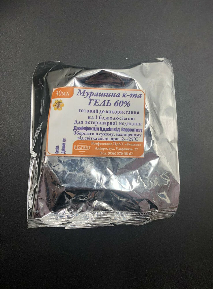 Мурашина кислота, гель. 30 грамів на 1 улей — акарицидний препарат, призначений для лікування варроатозу й акарапідозу бджіл.