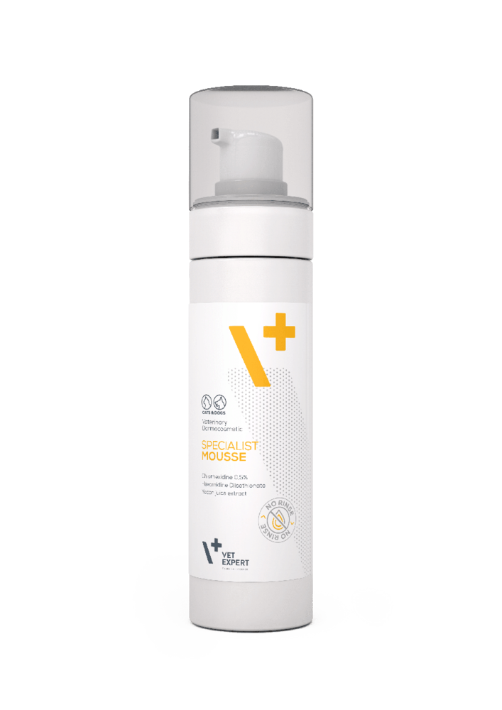 Піна чудово доповнює інші продукти лінійки Vet Expert Specialist, утворюючи єдину систему інфекційного контролю разом із шампунем SPECIALIST і серветками SPECIALIST.