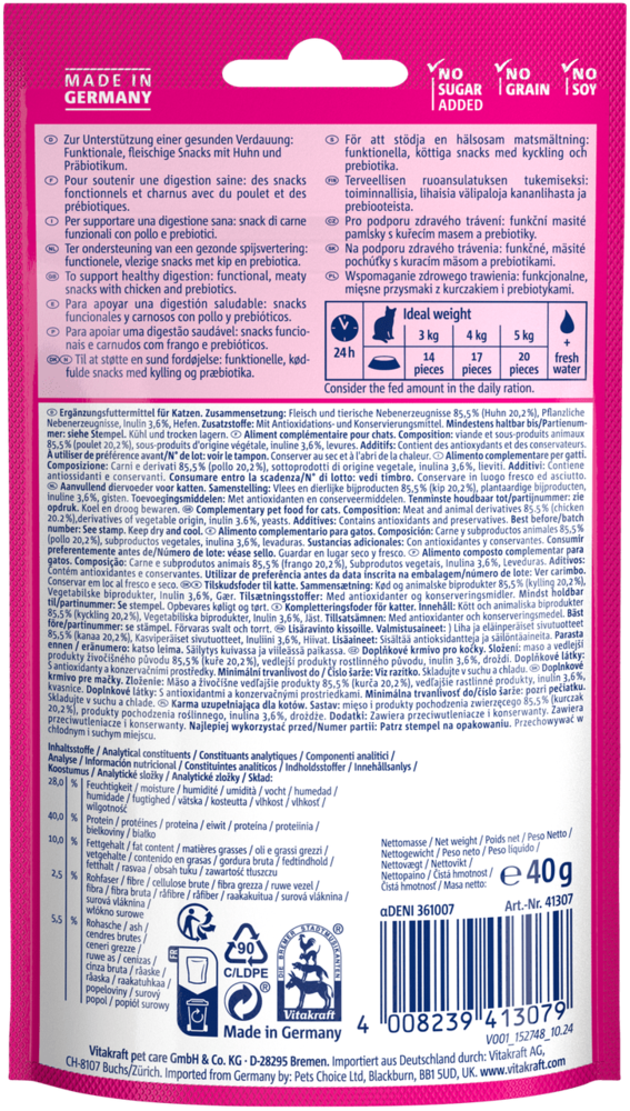 М'які ласощі сердечка для котів Вітакрафт Vitakraft Hearts Digestion з куркою та пребіотиками для підтримки травлення, 40 г