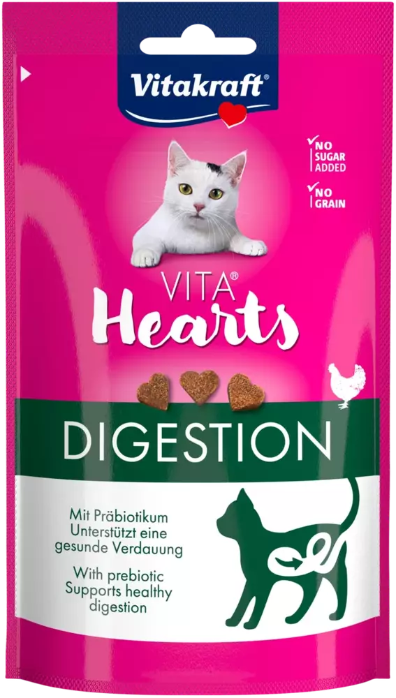 Vitakraft® Vita Hearts – це ласощі, які роблять більше. Доступні у трьох смачних та функціональних варіантах, вони змушують серцебиття котів битися швидше, а їхня м’яка текстура часто подобається чотириногим друзям. Маленькі ласощі розміром з один укус також ідеально підходять для годування.
