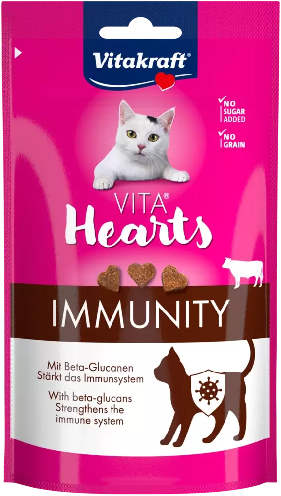 Vitakraft® Vita Hearts – це ласощі, які роблять більше. Доступні у трьох смачних та функціональних варіантах, вони змушують серцебиття котів битися швидше, а їхня м’яка текстура часто подобається чотириногим друзям. Маленькі ласощі розміром з один укус також ідеально підходять для годування.