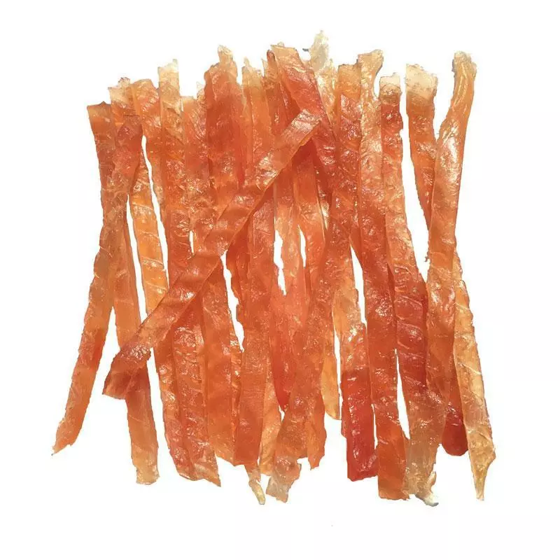 Опис Апетитні ласощі для собак у вигляді смужок з м'якого курячого м'яса. Смужки збагачені кальцієм, який особливо необхідний собакам для формування міцних кісток та зубів. Ласощі будуть особливо корисні цуценятам і молодим собакам, що ростуть, у період формування кісткової системи.