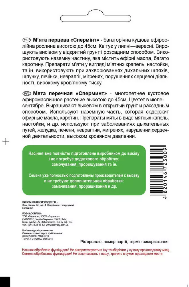 М'ята Спермінт, 0,1 г, Садиба Центр