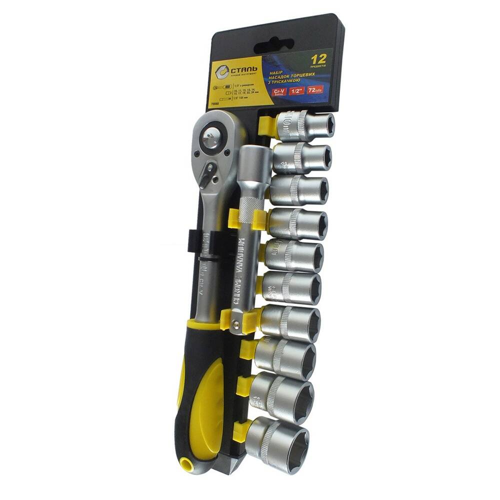 Набір насадок торцевих з тріскачкою 1/2", 12 од. СТАЛЬ