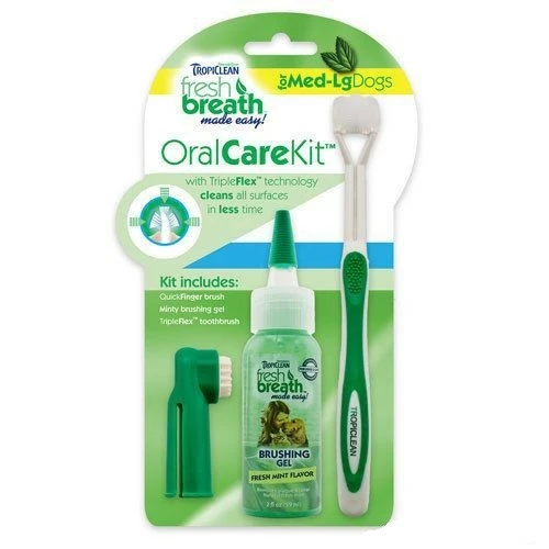 Догляд за зубами для собак Тропіклін TropiСlean Oral Care Kit великий набір для догляду за ротовою порожниною (2 види щіток, гель)
