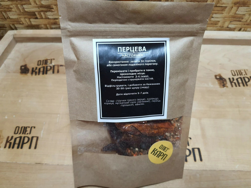 Вміст пакета засипати в ємність, залити якісним алкоголем 45 град фортеці, закрити кришкою і гарненько перемішати.