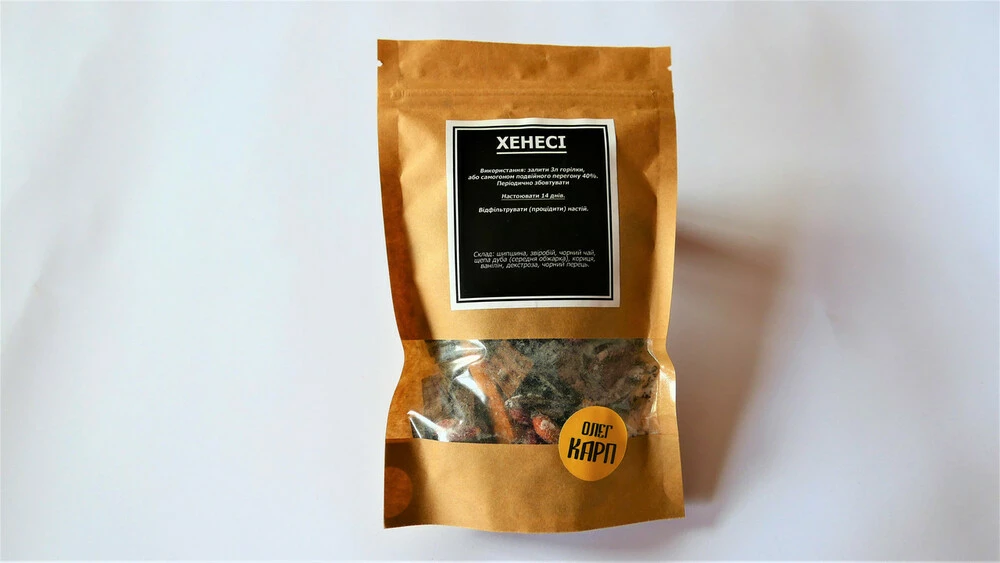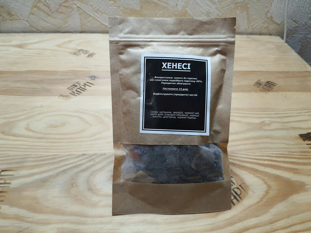 Склад: шипшина, звіробій, чорний чай, тріска дуба (середня обжарка), кориця, ванілін, декстроза, чорний перець