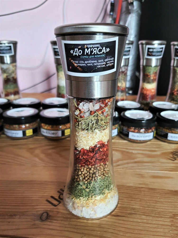 Набір спецій до м*яса разом з млинком. Висока якість. Натуральні складники. Млинок прослужить Вам довгі роки.