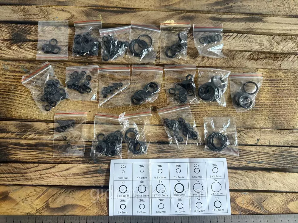 Комплект ущільнювальних кілець з оливостійкої гуми призначений для герметизації різьбових і стикових з’єднань у гідравлічних, пневматичних, сантехнічних та автомобільних системах. Завдяки широкому діапазону розмірів — від 3 мм до 22 мм — набір є універсальним рішенням для сервісу, майстерні чи домашнього використання.
