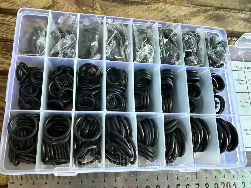 Комплект гумових ущільнювальних кілець O-RING призначений для герметизації різьбових та інших з’єднань у гідравлічних, пневматичних та сантехнічних системах. Набір включає 1200 кілець 24-х найпопулярніших розмірів, що робить його універсальним рішенням для майстерні, сервісного центру чи домашнього використання.