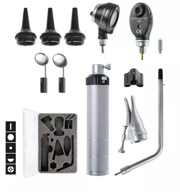 KaWe BASIC C10 / E15 — це професійний ветеринарний діагностичний набір для комплексного огляду вух, очей, носових порожнин і гортані тварин. Універсальний комплект поєднує отоскоп і офтальмоскоп, одну рукоятку та набір допоміжних інструментів для точної діагностики у клінічних і виїзних умовах.
