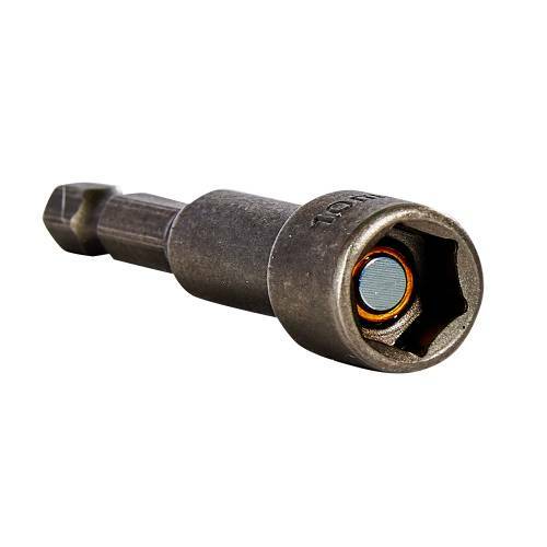 Насадка має вбудований потужний магніт, який надійно фіксує шуруп у головці та не дозволяє йому випадати під час роботи. Виготовлені з високоміцної сталі 40CR, яка відрізняється довговічністю та не схильна до крихкого руйнування. Довжина насадки складає 65 мм.