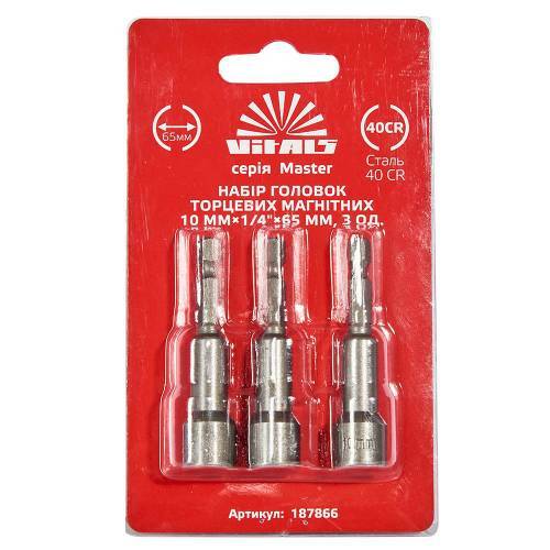 Опис набору головок магнітних торцевих 10 мм 1/4″×65 мм 3 шт. Vitals