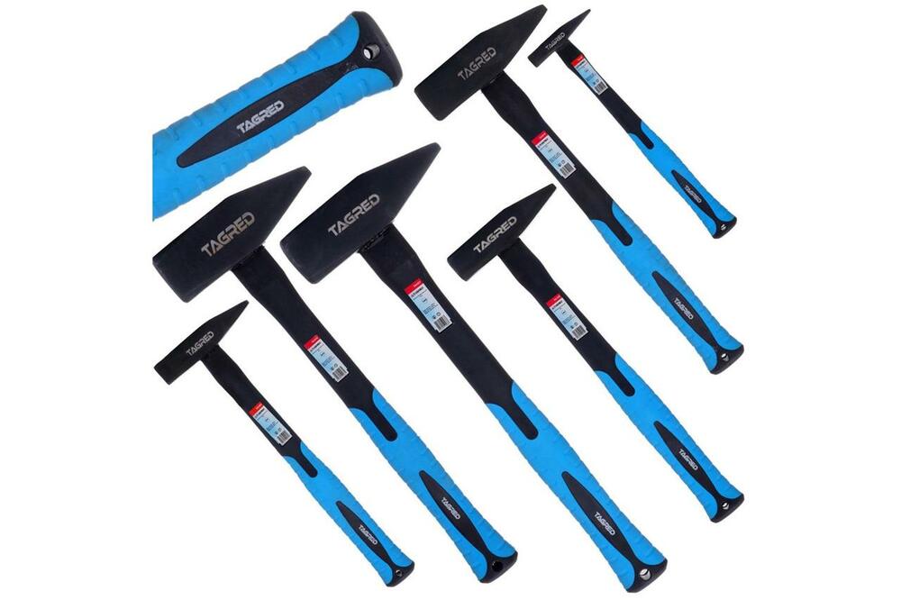 Набор из 6 легких и в то же время очень прочных слесарных молотков с ручкой из стеклопластика, устойчивого к перепадам температур и погодным условиям (не впитывает влагу из воздуха). Нескользящие рукоятки, покрытые полумягкой на ощупь резиной  , обеспечивают пользователю максимальный комфорт работы – надежный хват инструмента. Что немаловажно, относительно длинная ручка – увеличивает силу удара. Головки молотков  изготовлены из высококачественной стали. Молотки  очень прочные, устойчивые к повреждениям. Наш набор - идеальный выбор для строительства, дома, сада или мастерской.