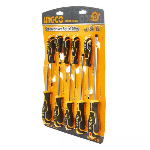 Набір викруток 10 шт INGCO INDUSTRIAL містить в комплекті шість викруток з прямим шліцом і чотири викрутки з хрестовим. Інструменти дозволяють закручувати й відкручувати різні кріпильні елементи.