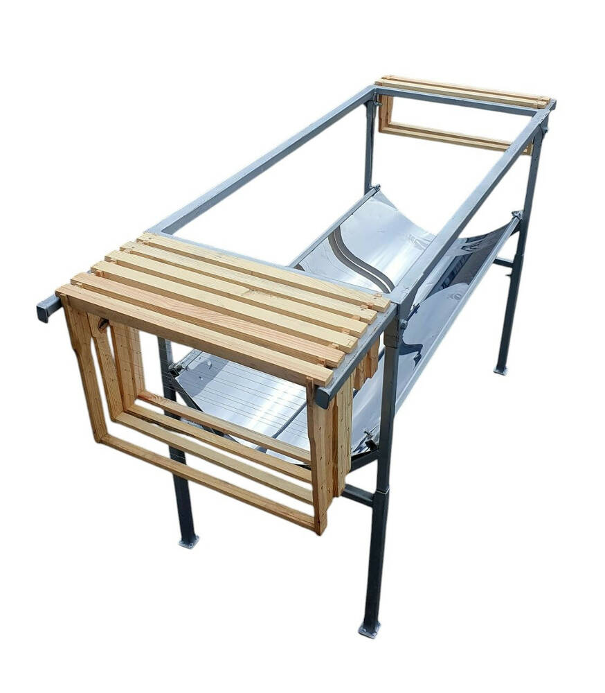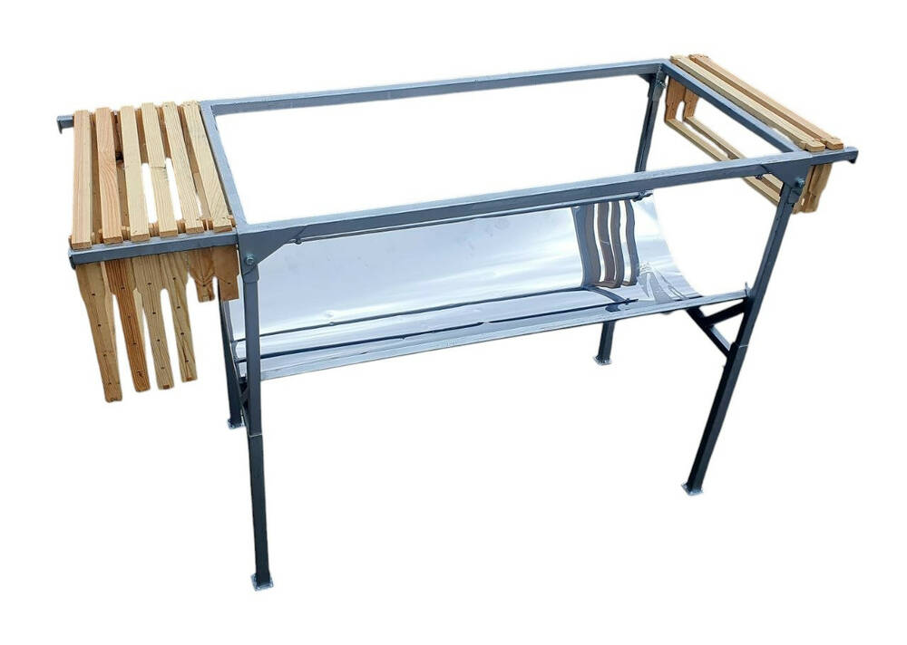Накопичувач для медових рамок, 1,6 метра, розкладний – призначений для накопичення розпечатаних рамок перед завантаженням у медогонку для відкачки. Також використовується для зберігання бджолиних рамок.