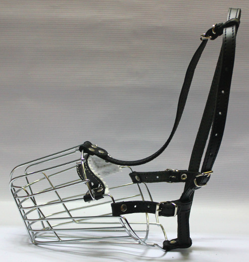 Підсилений металевий намордник для собак породи вівчарка, хромований. Розмір №1.