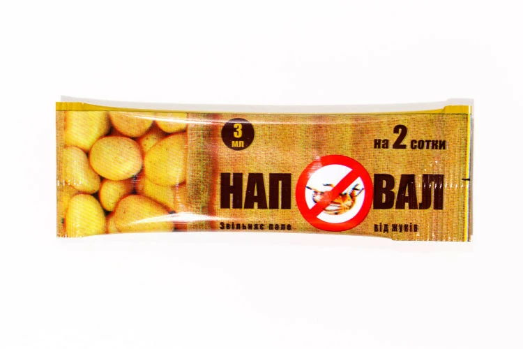 Захистити яблуні і груші від пильщика, довгоносика, квіткоїда, казарки, букарки, кліщів допоможе препарат, що містить два активних компонента, «Наповал» 3 мл. Він використовується в садах і городах, де може бути застосований на грядках з буряком, капустою, цибулею, часником, помідорами і, безумовно, картоплею. Тому помилковою є думка, що препарат «Наповал» придатний лише для боротьби з колорадським жуком.