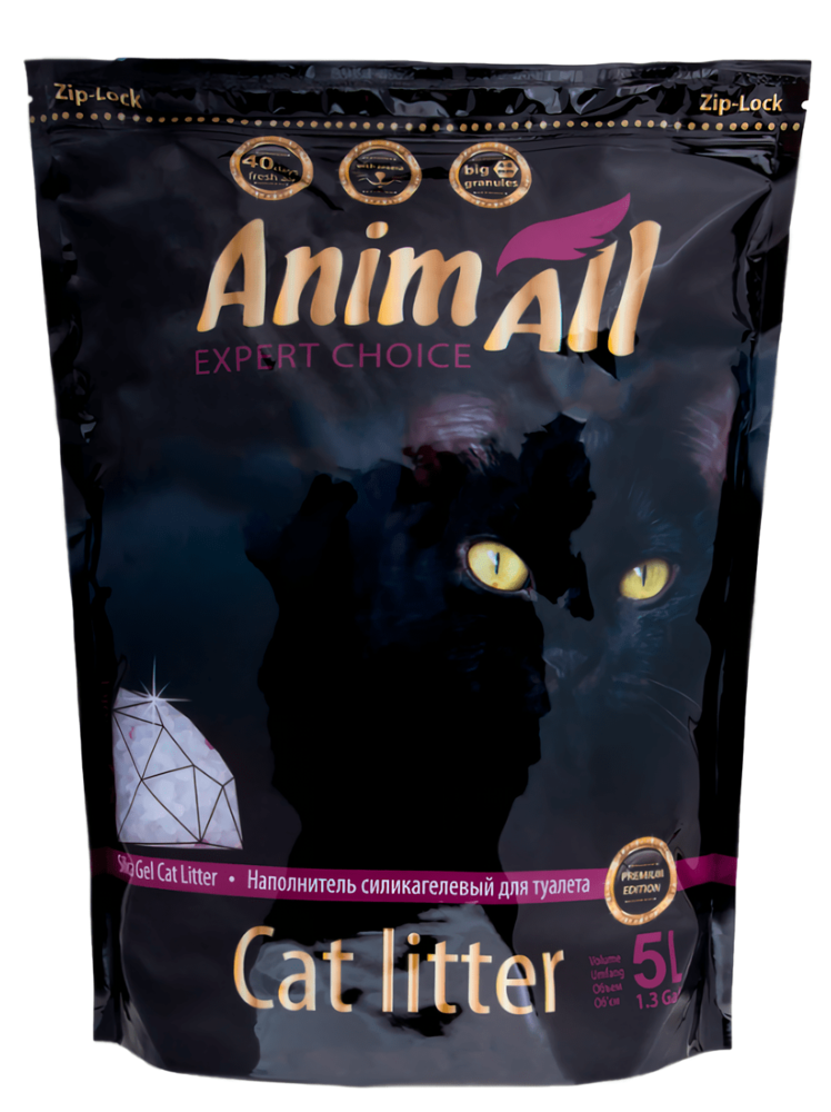 Силікагель ТМ AnimAll це висушений гель полікремнієвої кислоти (SiO2), який хімічно складається з тієї ж сполуки, що і звичайний пісок, але є високопористим тілом, тому має величезну площу поверхні (800 м²/1 г). Завдяки цій властивості силікагель має унікальну абсорбуючу (вбираючу) здатність. Волога і запах зникають у силікагелі AnimAll миттєво, але сам наповнювач ніколи не перетворюється на в'язку масу і не прилипає до котячих лап, а отже, не розноситься по дому.