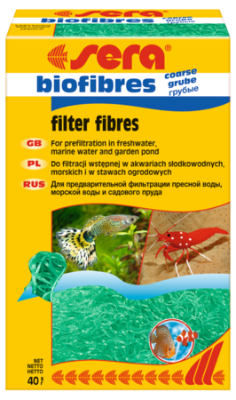 sera біофібрес призначені для попередньої біомеханічної фільтрації; ефективно затримують великі частинки бруду. Таким чином, Ви захищаєте наступні за ними фільтрувальні матеріали від забруднення великими частками і підвищуєте біологічну ефективність фільтра. Підходять для фільтрації прісної, морської та ставкової води.