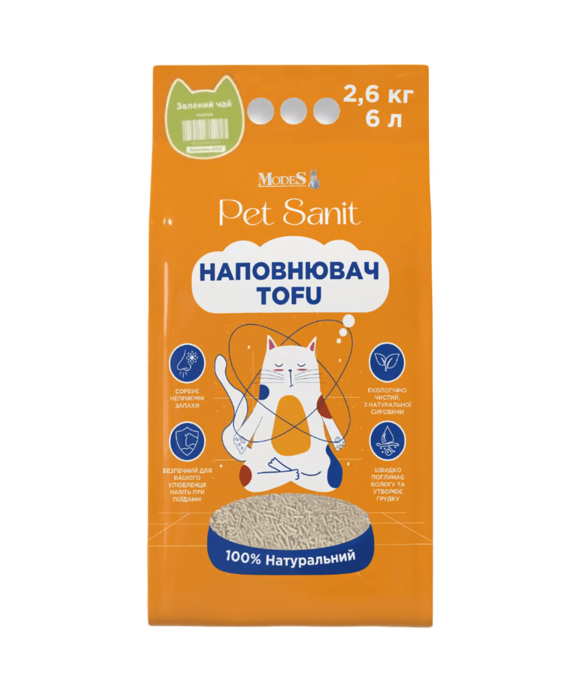 Наповнювач для котячого туалету ПетСаніт PetSanit тофу з ароматом зеленого чаю 6 л (2.6 кг)