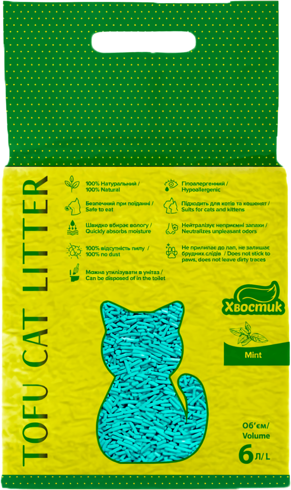 Наповнювач Tofu (Тофу) соєвий для кішок з м'ятою 6 л (2.6 кг) Хвостик