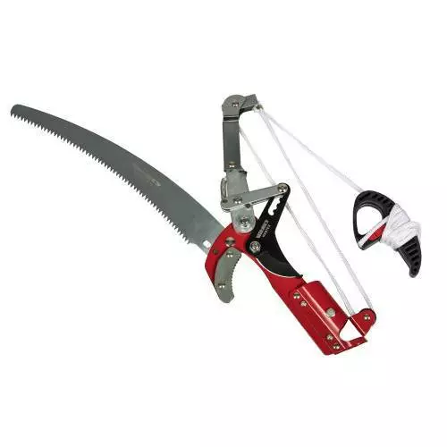 Для зручності інструмент оснащений нейлоновим 1,7 м шнуром з пластиковим захопленням. Також гілкоріз додатково обладнаний знімною ножівкою для обрізки більш масивних і сухих гілок.