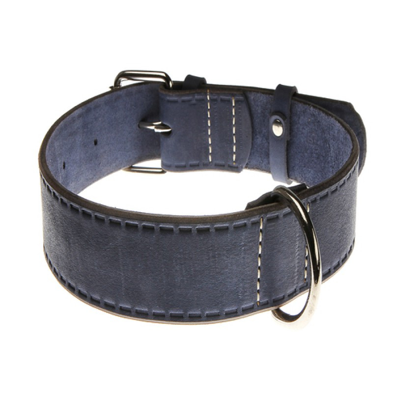 Нашийник 0375 14мм "Класик преміум" шкіряний з прокаткою шва Синій