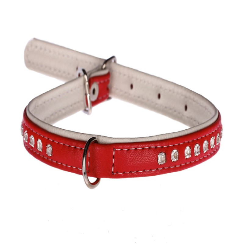 Нашийник 1602 15мм "Люкс" 2-х стор. прикраси стрази Червоний