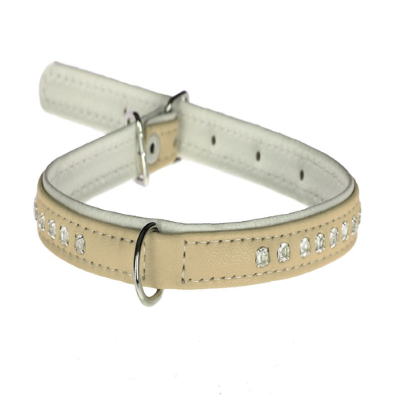 Нашийник 1604 15мм "Люкс" 2-х стор. прикраси стрази Бежевий