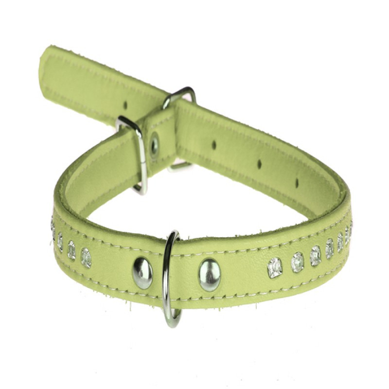 Нашийник 1673 15мм "Люкс" 1 стор. прикрашений стразами Салатовий