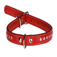 Нашийник 1942 10мм "Перламутр" шкіра подвійний прикрашений стразами Червоний