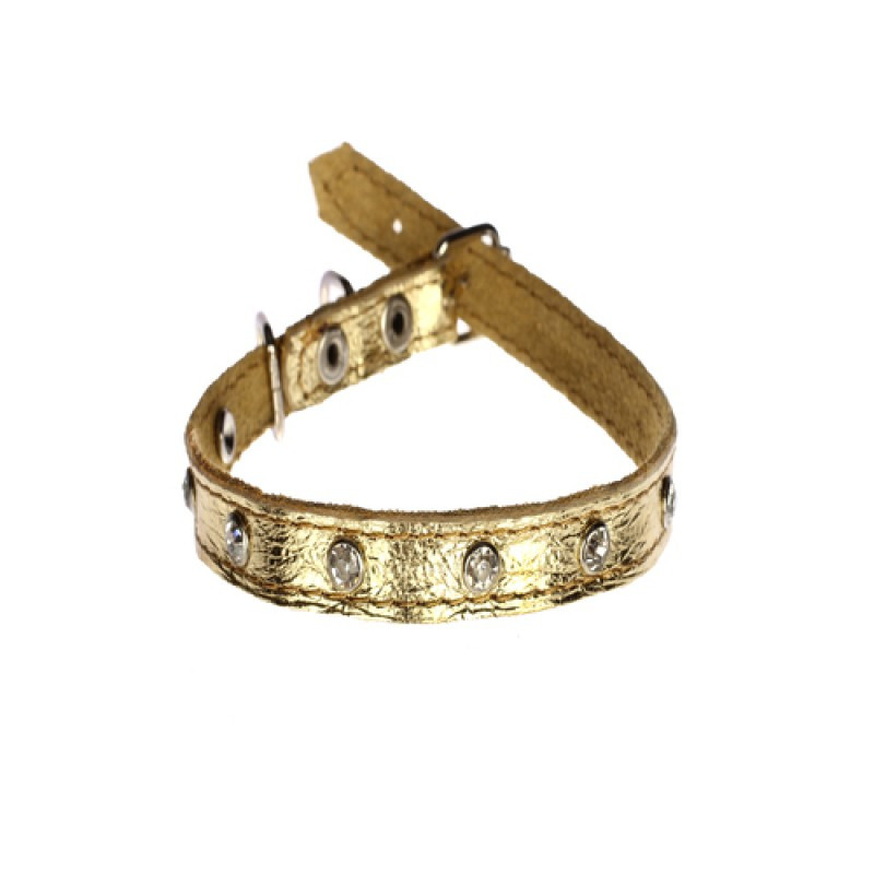 Нашийник 1943 10мм "Перламутр" шкіра подвійний прикрашений стразами Мідний