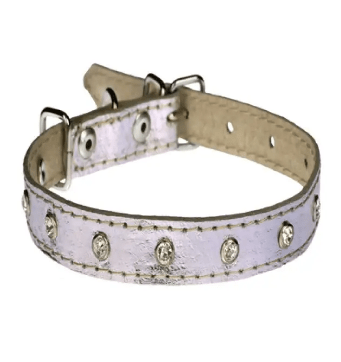 Нашийник 1944 10мм "Перламутр" шкіра подвійний прикрашений стразами Срібний