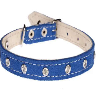 Нашийник 1945 10мм "Перламутр" шкіра подвійний прикрашений стразами Синій