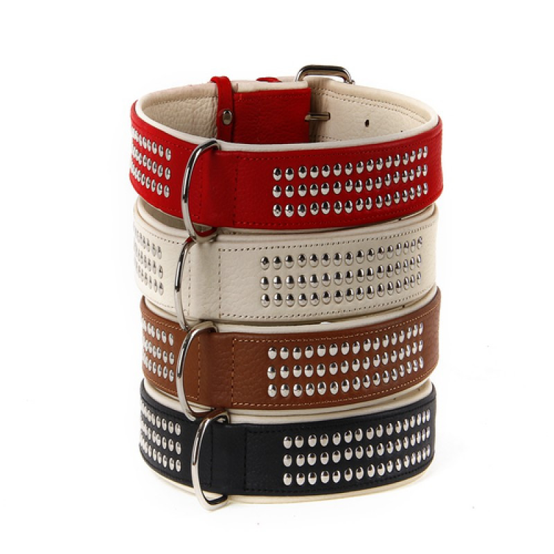 Нашийник 2317 20мм "Преміум" шкіра подвійний прикрашений металофурнітура
